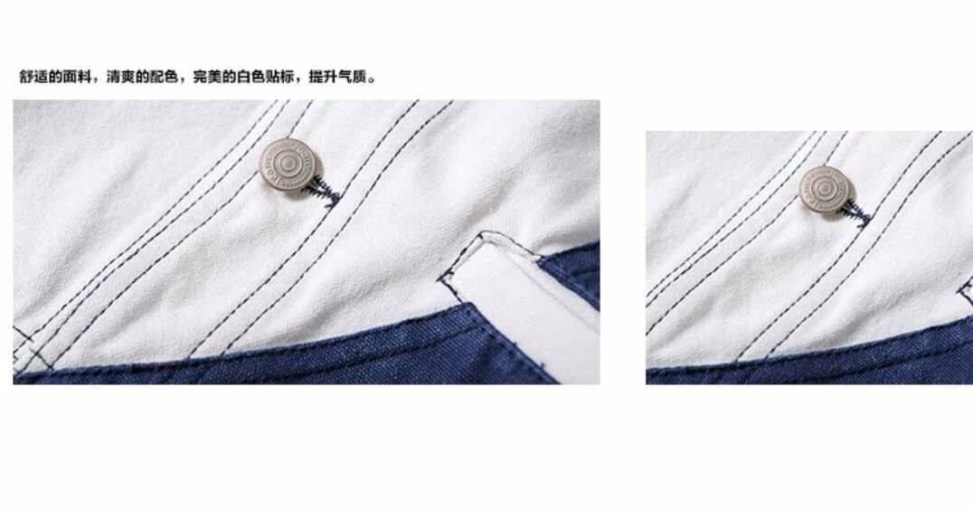 • 美式休闲白色牛仔外套日系拼色翻领夹克衫男女情侣宽松工装上衣潮